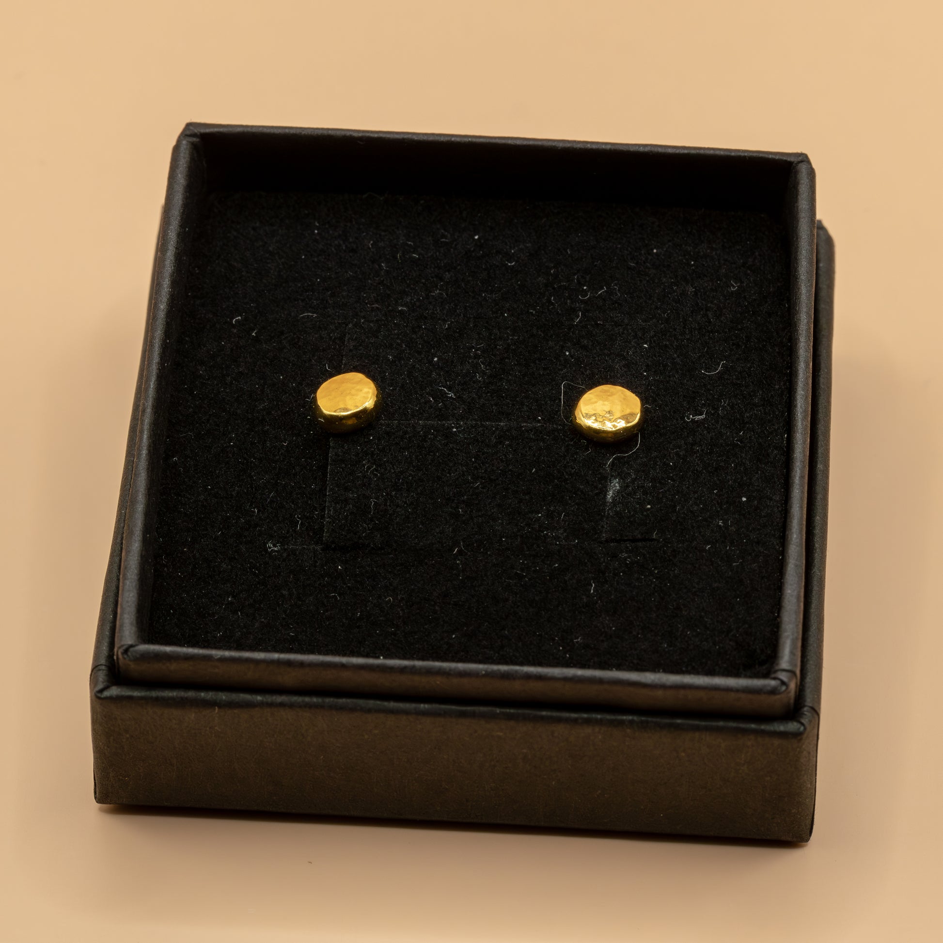 Disse øredobbene er laget i 925 sølv, og har en smidd overflate. De er forgylte, og har en blank og fin finish. Ingen er helt lik, da disse er smeltet om fra gjenbrukssølv og laget for hånd.