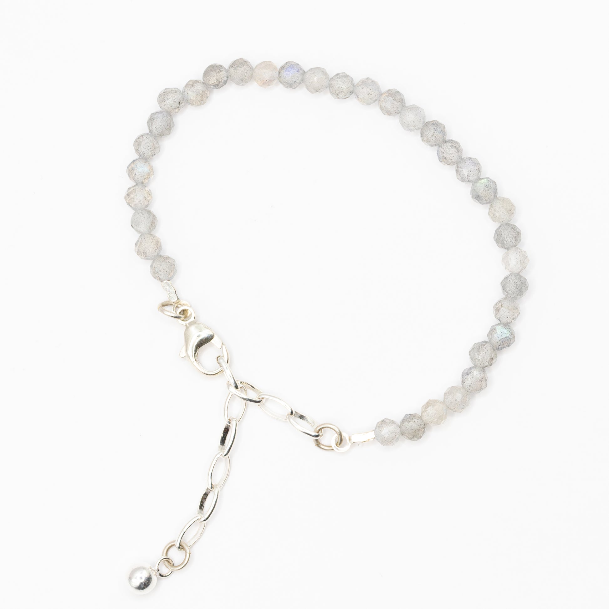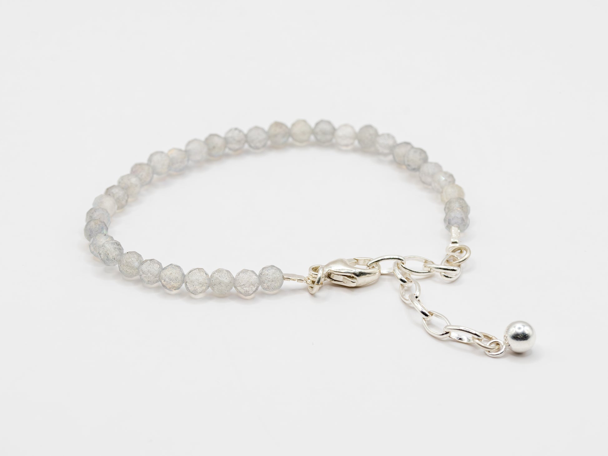 Nydelig armbånd i labradoritt og 925 sølv. Det har en praktisk lås og en fin sølvkule som avslutning.